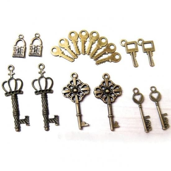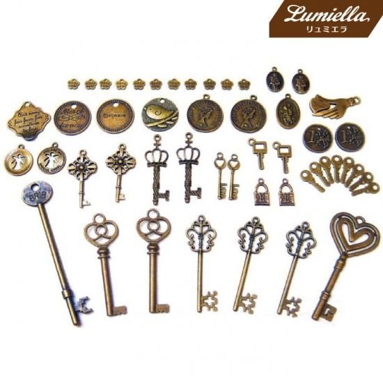 【リュミエラ】【50個セット】チャーム アンティークゴールド カギ・コイン アソート 詰め合わせ アクセサリーパーツ
