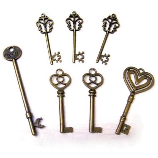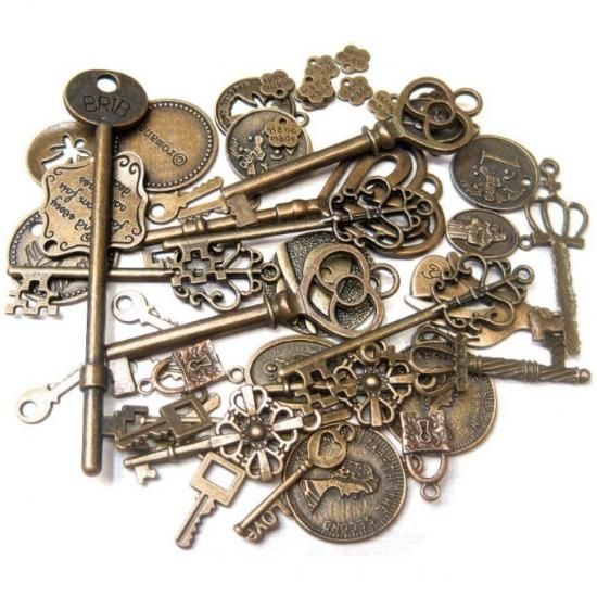 アンティークゴールドでかわいい鍵とコインのセット♪