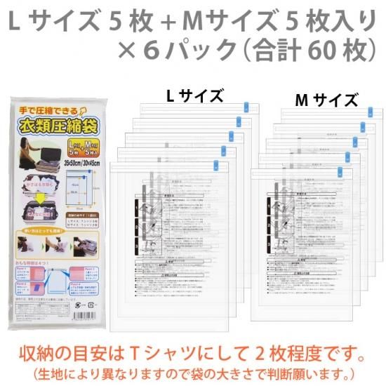 衣類圧縮袋 Lサイズ5枚+Mサイズ5枚入り 6組セット 合計60枚 福袋