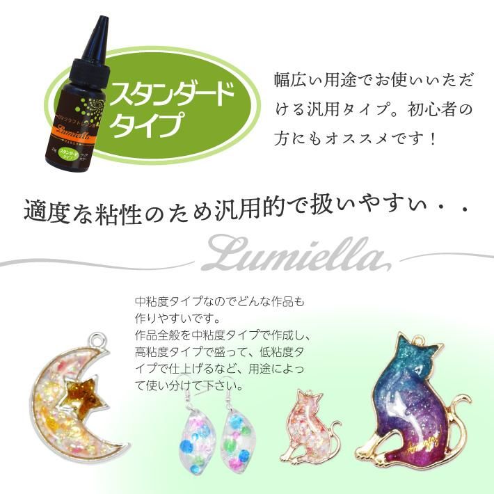 【リュミエラ】レジンシリーズに新しくPREMIUM レジン液が登場!UV-LEDライト対応!硬化時間短縮!キレイな透明感で匂いも軽減!【スタンダードタイプ】は中粘度で適度な何度があるため扱いやすいタイプです。