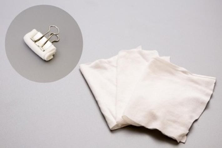 ※タンポとは綿などの布地をきつく折りたたんだものです。不要なTシャツ等を10cm角程度に小さく切り、折りたたんでからクリップなどに挟むと使いやすくおすすめです。